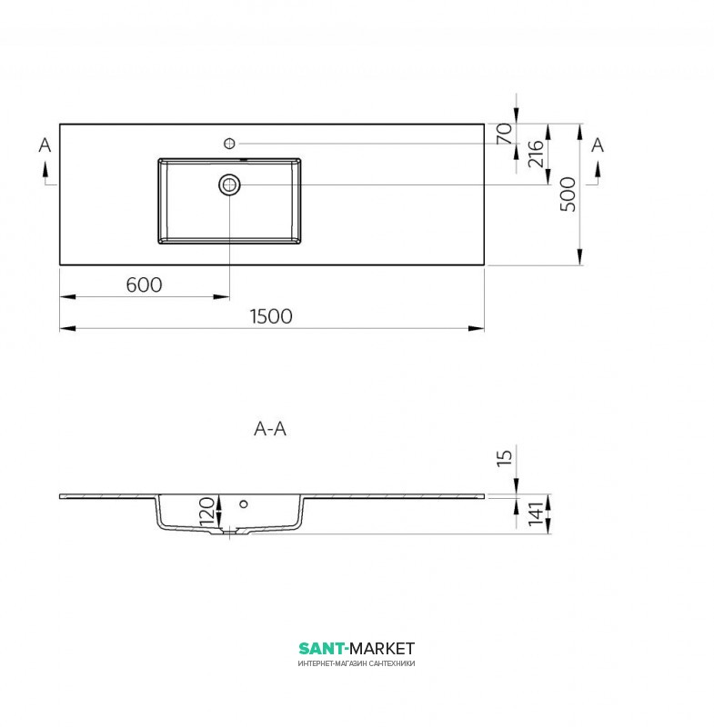 Раковина произведена из литого мрамора.