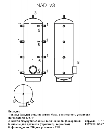 Аккумулирующие баки NAD v3 выпускаются в двух вариантах: с фланцем с межцентровым расстоянием болтов 210 мм для установки фланцевого нагревательного элемента TPK или без фланца, только с патрубками. В стандартном исполнении фланец заглушен. Аккумулирующие резервуары поставляются с высококачественной изоляцией Symbio из полиэтилентерефталатного/ полиэфирного волокна (флис).