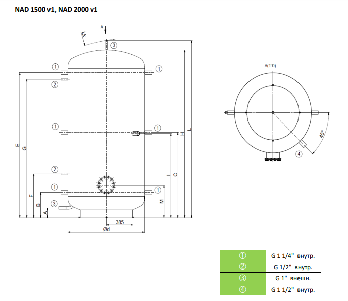 Аккумулирующий бак NAD 2000 v1, в котором можно установить штуцер G6/4“. Штуцер G6/4“ можно использовать для установки электрического термоэлемента TJ G 6/4“. Аккумулирующие баки поставляются с теплоизоляцией толщиной 120 мм.