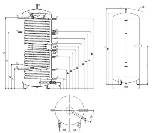 Баки производятся объемом 800 и 1000 литров. Баки и трубчатые теплообменники изготовлены из стали, без обработки внутренней поверхности, наружная поверхность баков покрыта защитной краской. Отдельные версии оснащаются трубчатым теплообменником и погруженным нержавеющим теплообменником объемом 32 литров и двумя штуцерами G1½" с возможностью установки электрического нагревательного элемента серии TJ 6/4". Баки оснащены съемной изоляцией толщиной 80 мм и замком.
