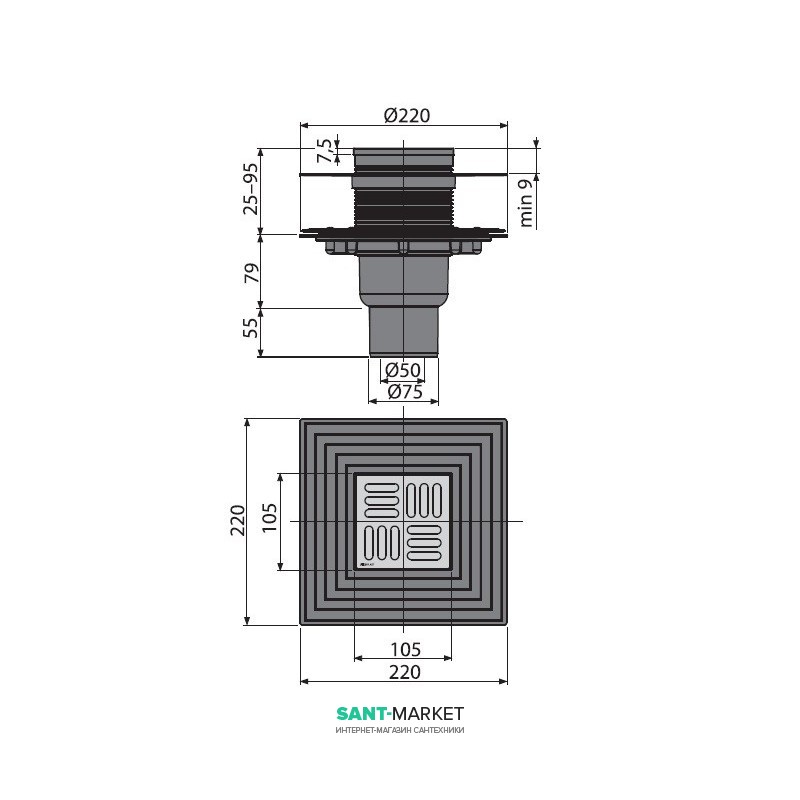 - Совместимость с другими составными частями сливного трапа, включительно мокрого, сухого и комбинированного гидрозатвора SMART
