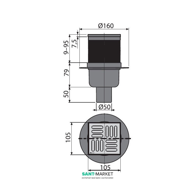 Трап для подвальный помещений AlcaPlast вертикальный комбинированный затвор 105x105 APV32