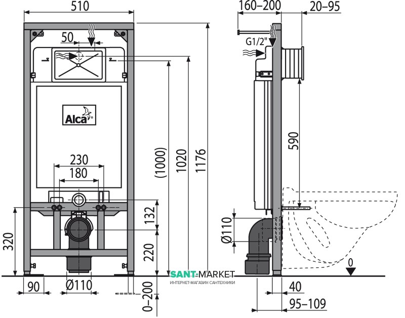 Система инсталляции для подвесного унитазa AlcaPlast Sadromodul 51х117х16 A101/1200