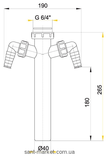 Переходник Alcaplast A44M D=40 пластик, с накидной гайкой 1 1/2“ и двумя отводами для стир. машин