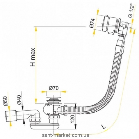 Характеристики – Сифон AlcaPLAST A562KM для ванны Производитель AlcaPLAST