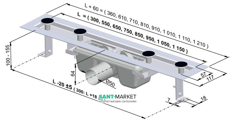 - Конструкция: 2 гидрозатвора, 2 легко вынимающихся элемента, 2 ловушки-сток.