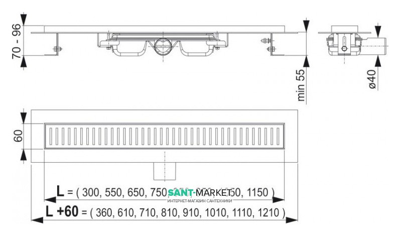 Пороги. Трап для душа имеет пороги, для визуального отделения решетки от поверхности плиточного пола. Пороги выполнены из нержавеющей, прошедшей обработку стали. Сточная вода направляется между порогами и решёткой, а также сверху решётки в перфорированные отверстия.