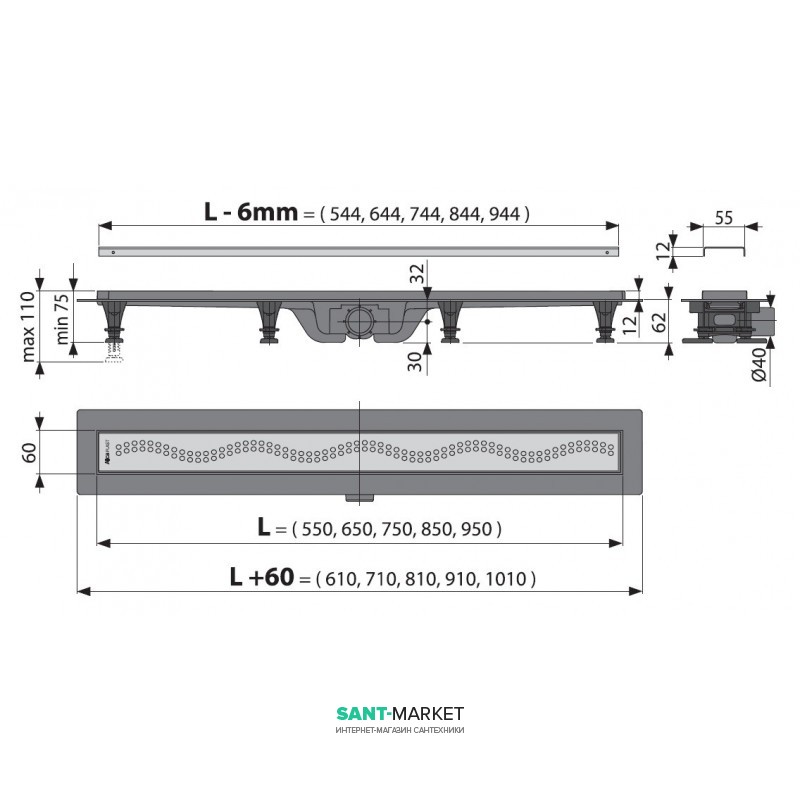 - Высота монтажа от 62 мм