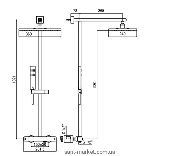 Душевая колона с верхним душем, ручным душем и термостатическим смесителем