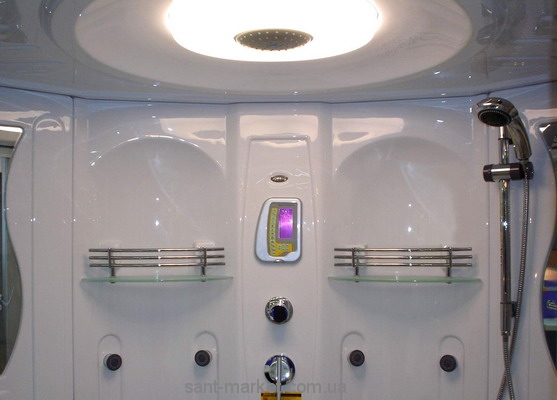 Двухместная гидросауна с большим внутренним пространством, электронной панелью управления, широким спектром видов массажа тела и ног, турецкой баней, приемом телефонных звонков, радио, подключение к CD, дозатором фитокосметики и подсветкой.