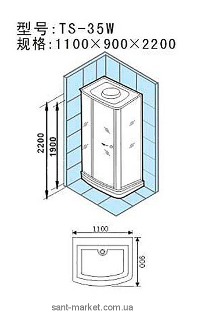 Гидробокс угловой Appollo TS-35W 110х90x220 с низким поддоном