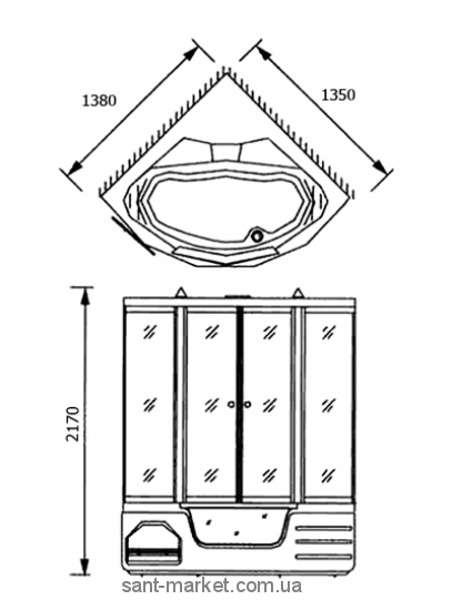 Гидробокс угловой Appollo TS-0819 135х135х221 с ванной