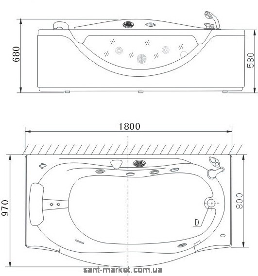 Ванна акриловая прямоугольная Appollo TS 180х99х68 ТS-932 c окошком