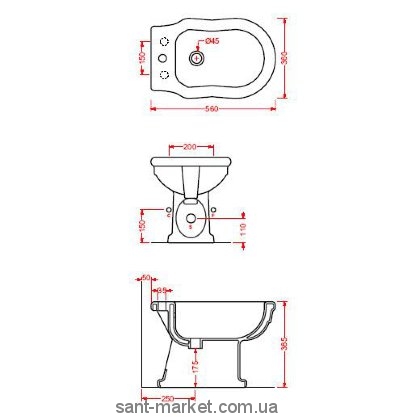 Биде напольное Artceram коллекция Hermitage 55х36х39 с переливом HEB002 01:00