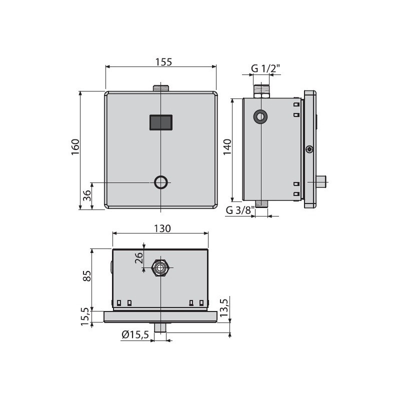 ASP4-KT устройство автоматического смыва для писсуара с возможностью мануального смыва, металл, 12 B (подключение к сети)