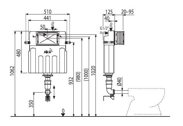 Бачок для унитаза AlcaPlast Basicmodul под кирпичную кладку
