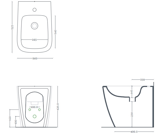Биде напольное ArtCeram A16 36х52,5 см керамика зеленый шалфей ASB002 44;00