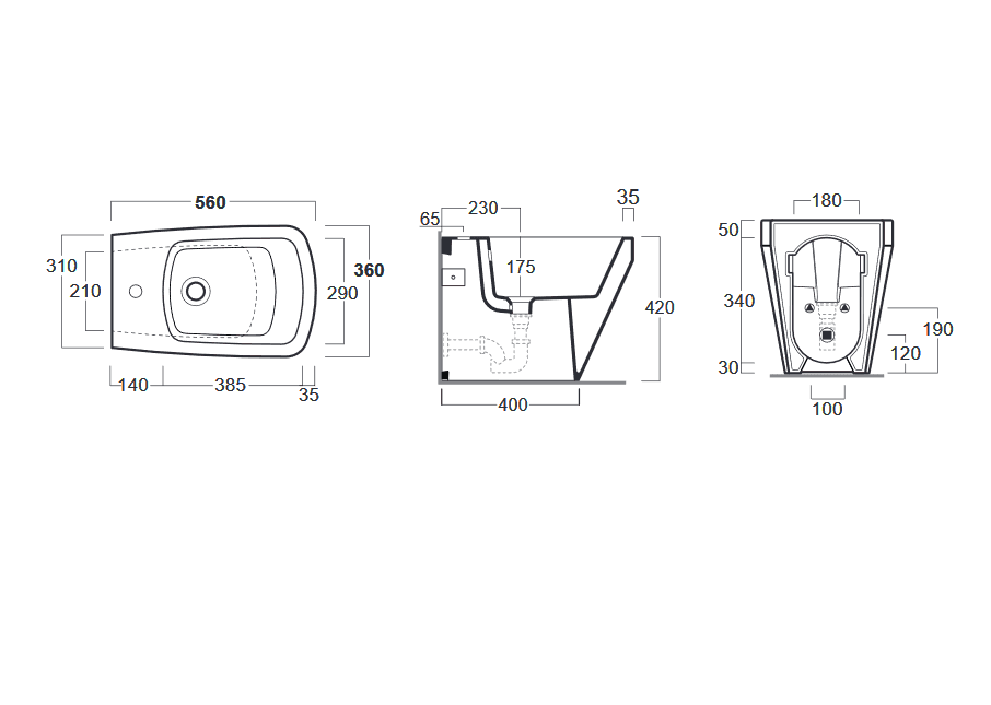 1) Биде напольное Simas Baden Baden 36х56 см фаянс белый