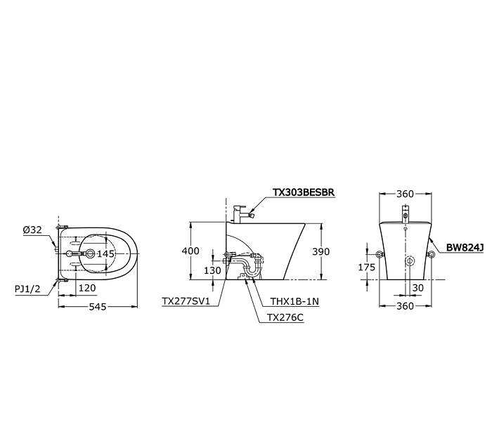 Биде напольное TOTO Avante с переливом керамика белый BW824J