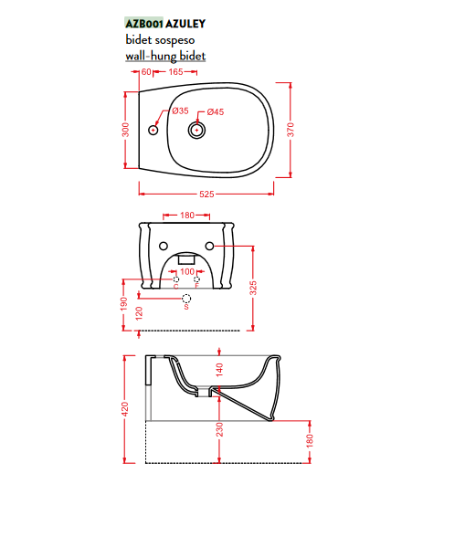 Биде подвесное ArtCeram Azuley 37х52,5 см белый матовый