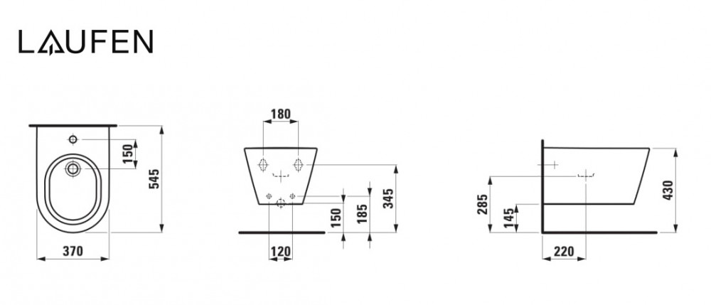 Биде подвесное Laufen Kartell 37х54,5 см санитарная керамика черный глянцевый