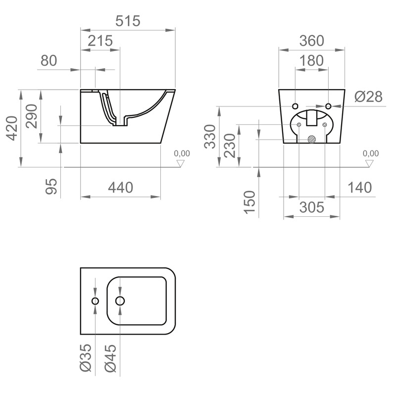 Биде подвесное Ponsi Wave 36х51,5 см керамика белый глянец