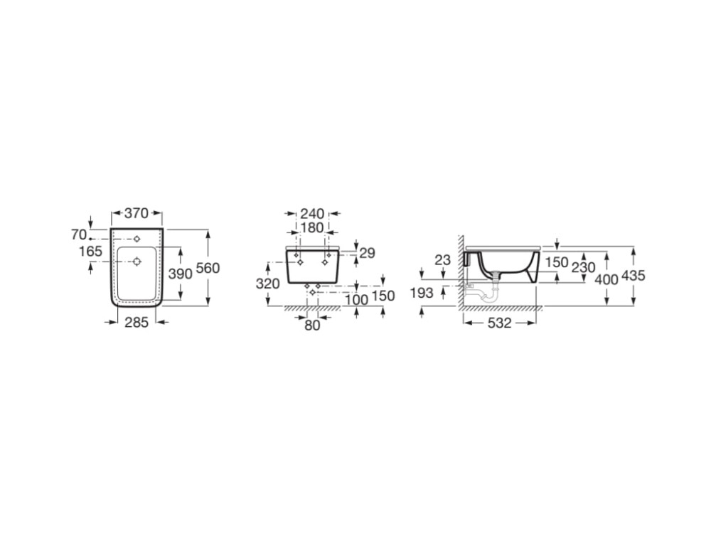 Биде подвесное Roca Inspira 37х56 см сантехническая керамика бежевый A357535650