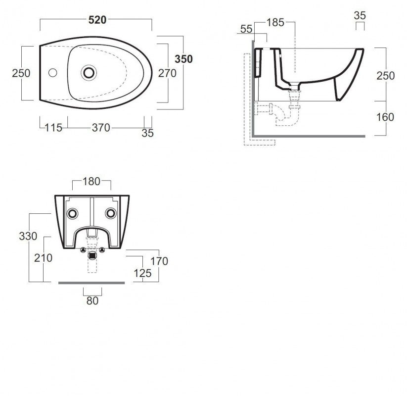 1) Биде подвесное Simas LFT Spazio 35х52 см санфаянс белый