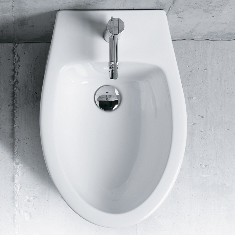 Биде подвесное Simas LFT Spazio LFT19 выполнено в овальной форме, предусматривает настенный тип монтажа.
