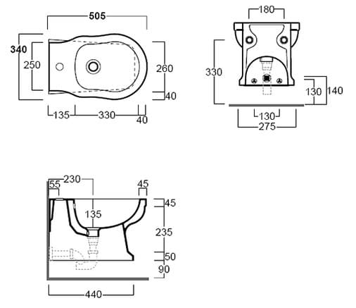 1) Биде подвесное Simas Londra 34х50,5 см фаянс белый