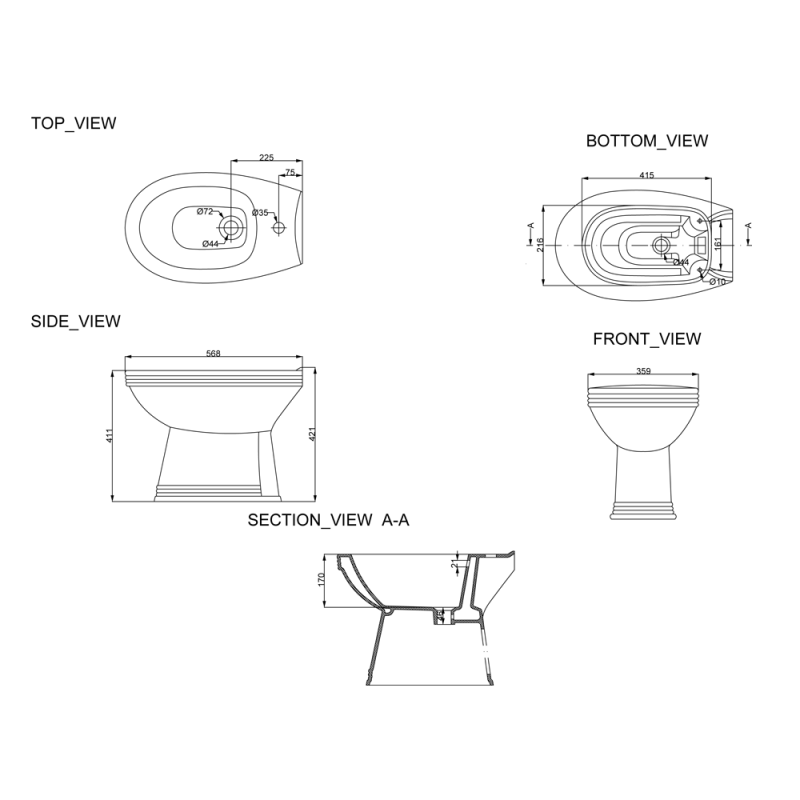 1) Биде Primera Antique напольное санфаянс белый