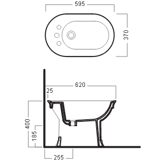 Биде напольное с тремя отверстиями Hatria DOLCEVITA 37х56 см Y0EU01