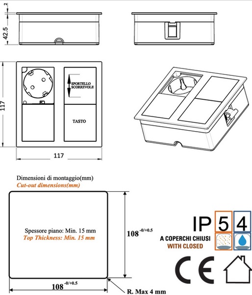 Встраиваемая розетка ASA VersaHit Dual - самая компактная среди врезных розеток, которая монтируется в стандартную столешницу, опускаясь вглубь всего на 40 мм.