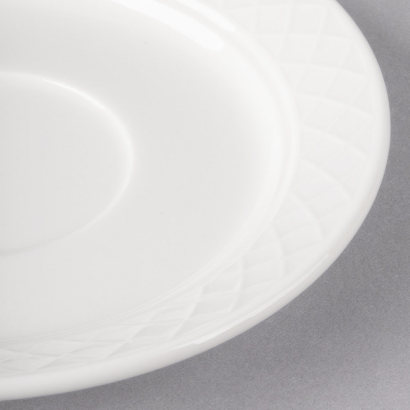Это блюдце из белого фарфора Villeroy & Boch Bella, оформленное в свежем белом цвете, придаст элегантности и изысканности. Это блюдо станет профессиональным и привлекательным решением для обслуживания вашего ресторана, отеля или загородного клуба. Его простой силуэт и цвет создают контраст, позволяя вашим красочным свежим блюдам стать центральным элементом любой обеденной зоны. Используйте это блюдце, чтобы улавливать излишки капель или пролитых жидкостей в сочетании с совместимой чашкой. Это блюдце имеет привлекательный перекрестный узор, разработанній, чтобы обеспечить тонкие, элегантные детали и добавить визуальный интерес к вашей настольной презентации. Подавайте ее отдельно или сочетайте ее с остальной частью коллекции Bella для привлекательной и профессиональной презентации.