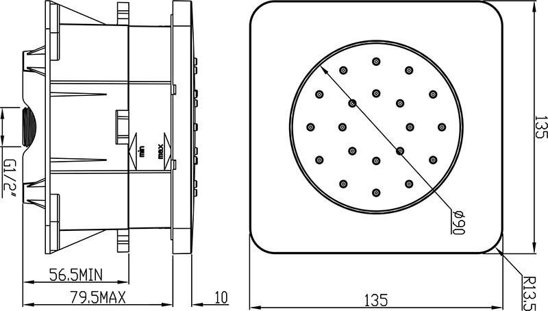 - картридж (диаметр, материал): 135 x 135 мм, квадратный