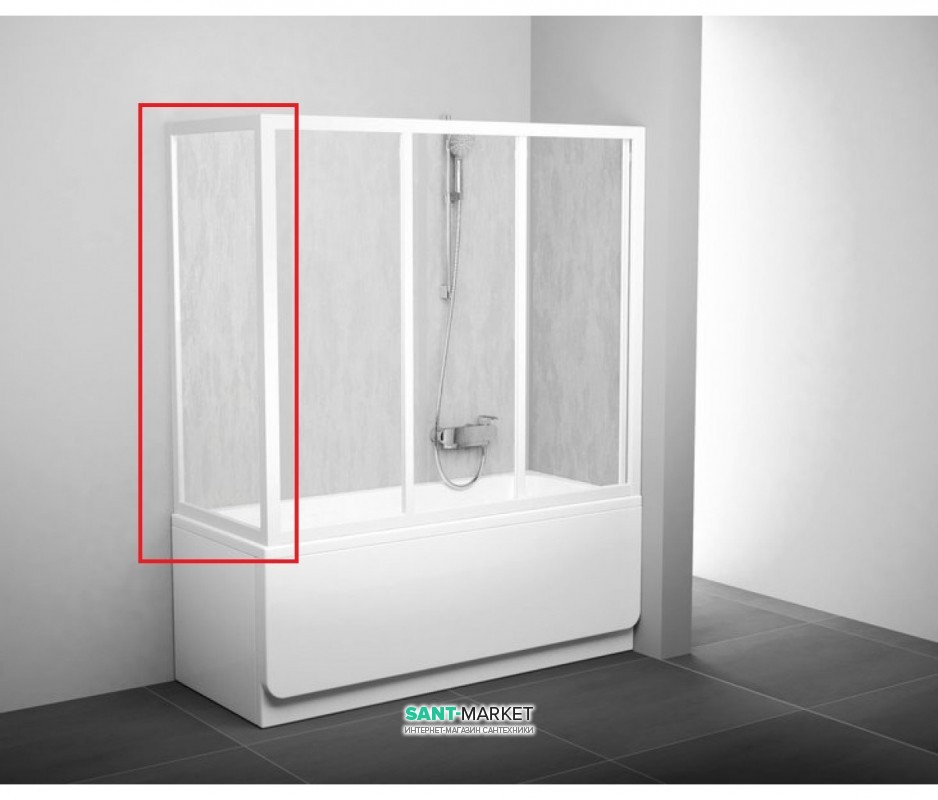 Неподвижная часть, которая не используется самостоятельно, а лишь в комбинации с дверьми для ванны AVDP3. Позволяет создать идеально герметичное душевое пространство вокруг ванны.