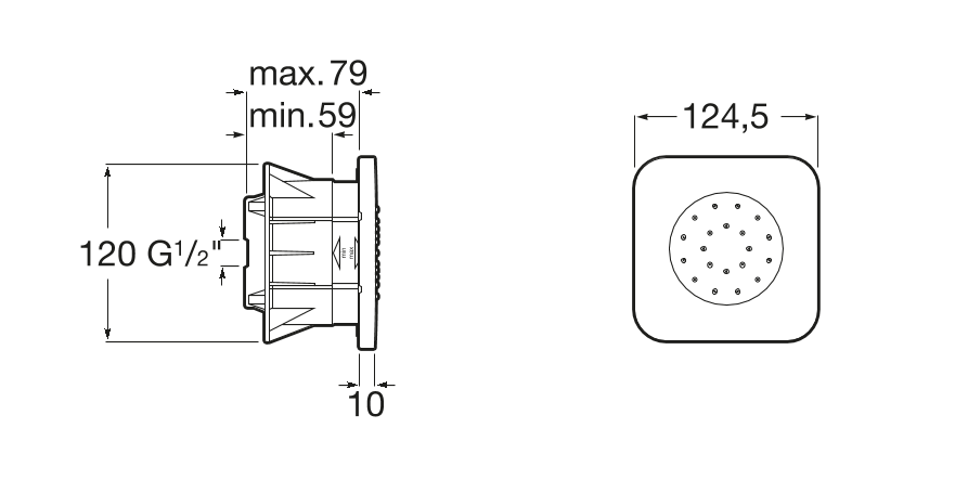 Боковой душ квадратный Roca Puzzle встраиваемый хром A5B3778C00