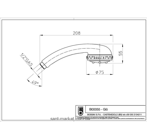 Душевая лейка BOSSINI коллекция Giò хром B00055