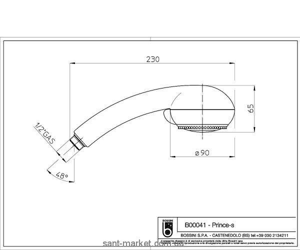 Душевая лейка BOSSINI коллекция Prince-s хром B00041