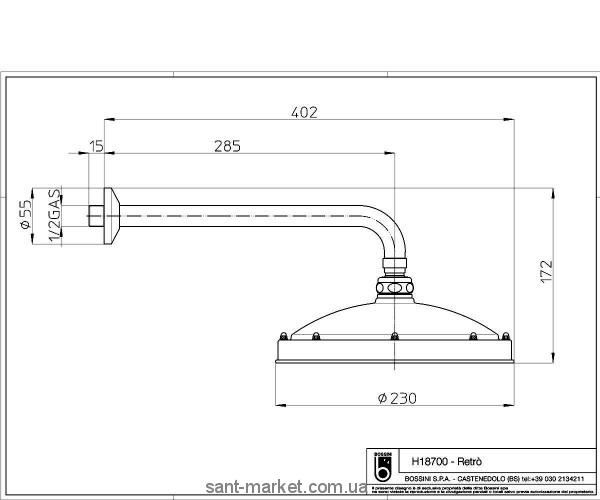 Верхний душ с тропическим душем BOSSINI коллекция Retrò Antikal хром H18700G