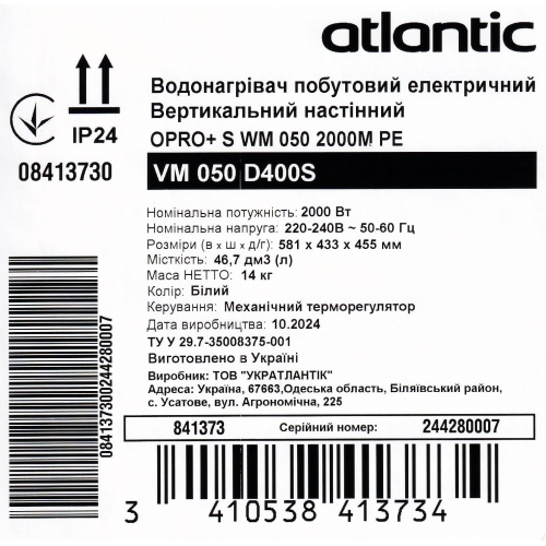 Бойлер Atlantic O'PRO+ VM 050 D400S (2000W)
