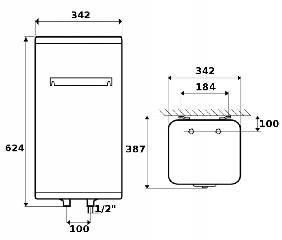 Бойлер имеет новый современный дизайн и выполнен в форме призмы. Габариты прибора позволяют разместить его даже на небольшой площади, сэкономив пространство. Модель устанавливается только вертикально. Белый цвет корпуса идеально впишется в любой интерьер.