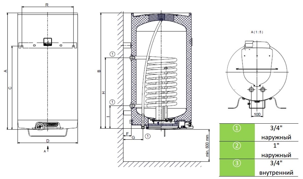 1) Бойлер комбинированного нагрева Drazice OKC 160 навесной вертикальный