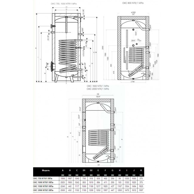 - OKC 300, 400, 500, 750, 1000 NTR(R)/10 Бар – нагрева воды для системы горячего водоснабжения (нагрев от высокотемпературного теплоносителя системы отопления / гелиосистемы);