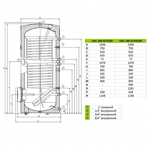 1) Бойлер косвенного нагрева Drazice OKC 300 NTR/BP напольный вертикальный