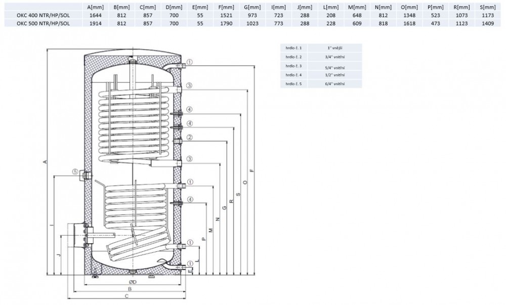 1) Бойлер косвенного нагрева Drazice OKC 500 NTRR/HP/SOL для комбинации тепловых насосов и солнечных систем