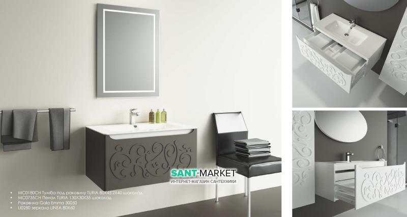 Тумба с раковиной Bretta Turia подвесная 80х45.5х40 шоколад MC0180CH + G3005001