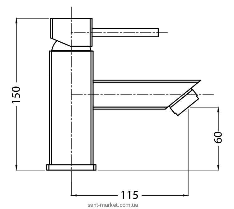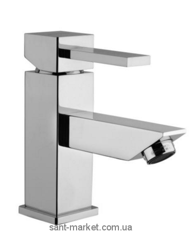 Данная модель имеет прямоугольное основание высотой 15 см четкого квадратного сечения. От его средней части под углом 90 градусов отделяется прямой кран длиной 11,5 см, также обладающий строгим квадратным сечением. Носик крана скошен, в результате чего заметно выступающее круглое сопло крана будет направлять воду под углом 45 градусов относительно плоскости раковины. Вершину основания венчает строгая трапециевидная ручка квадратного сечения с длинным плоским рычагом прямоугольной формы для регулировки напора горячей и холодной воды.
