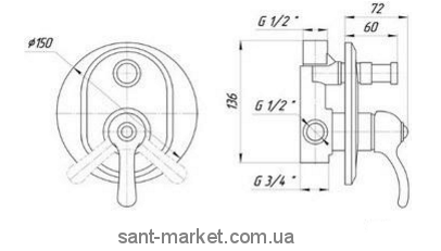 Смеситель монокомандный встраиваемого типа с автоматическим переключателем.