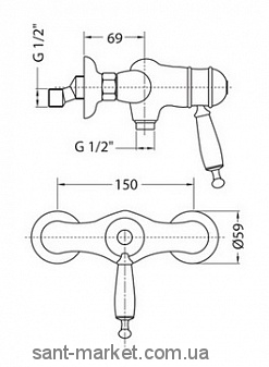 Смеситель для душа с термостатом настенный Bugnatese коллекция Oxford золото OXDO6339